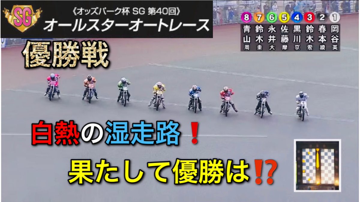 伊勢崎sgオートレースグランプリ優勝戦 元船橋勢が圧倒か 高橋貢は8枠でやる気なし 元船橋6人 Vs 山陽1人 伊勢崎1人 内枠勢に対抗できるか岩崎 鈴木 青山 中村雅人のスタート争い Youtube
